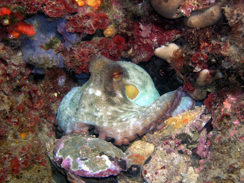 Sepias, Calamares, Golondrinas, Nudibranquios, Rubios. Protegido de las corrientes y de fácil orientación.